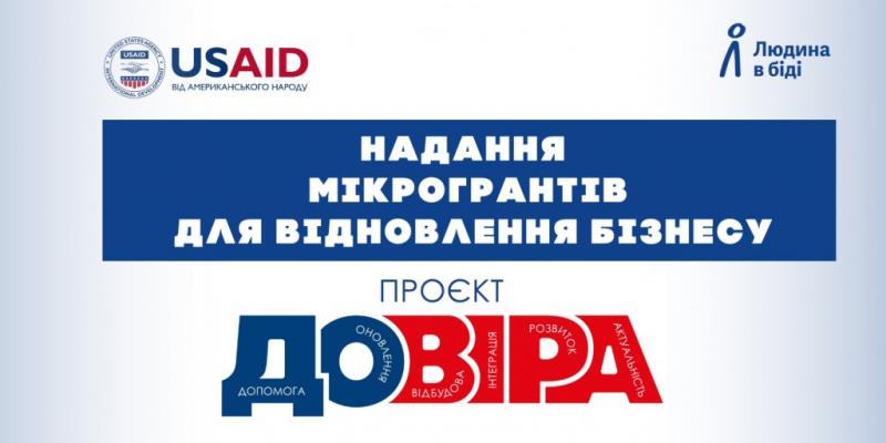 Чеська гуманітарна організація «Людина в біді» за фінансової підтримки американського народу в межах проєкту «ДОВІРА» оголосила конкурс з надання мікрогрантів для відновлення переміщеного та місцевого бізнесу, що постраждав від воєнних дій