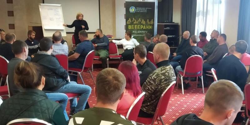 В рамках Всеукраїнського проєкту «Ветерани: від діалогу до працевлаштування» представники Дніпропетровської обласної служби зайнятості взяли участь у проведенні тренінгу для ветеранів АТО «Особливості діалогової комунікації при працевлаштуванні, як зберегти повагу до себе та інших», де презентували присутнім послуги служби зайнятості, розповіли про особливості ринку праці Дніпропетровщини та надали поради з пошуку роботи