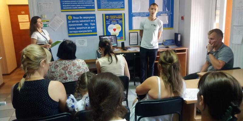 Фахівці П’ятихатської районної філії Дніпропетровського обласного центру зайнятості провели ярмарок вакансій на замовлення компанії «Наша ряба», де шукачам роботи презентували вакансію продавця продовольчих товарів та ознайомили зі специфікою роботи на посаді