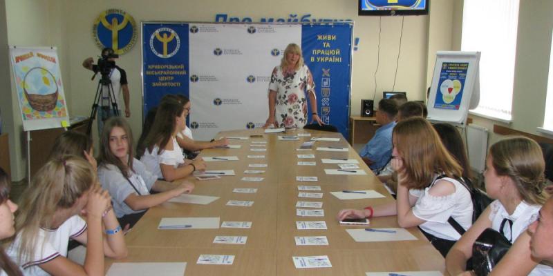 З нагоди Дня знань випускники 9 класів загальноосвітньої школи №68 стали учасниками профінформаційного заходу у Криворізькому міськрайонному центрі зайнятості, де долучились до засідання клубу «Компас», дізнались про новаційні підходи у діяльності та обслуговуванні клієнтів служби зайнятості, онлайн сервіси, а також перспективні спеціальності майбутнього