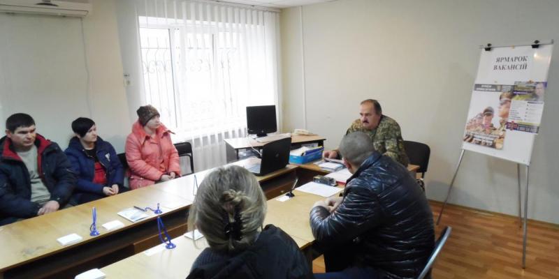 У приміщені Покровської міської філії Дніпропетровського обласного центру зайнятості відбувся ярмарок вакансій, де представники «Покровського міського територіального центру комплектування та соціальної підтримки» запропонували безробітним працевлаштуватись на контрактну службу