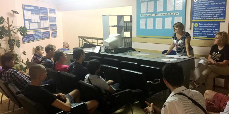 Шукачам роботи Синельниківського району презентували послуги з професійного навчання, розповіли про їх сутність та переваги, підкреслили на можливості підтвердження неформального навчання та отримання ваучеру, а головне – наголосили на перспективі перенавчитись безкоштовно, за направленням служби зайнятості, у т.ч. на базі Центрів професійно – технічної освіти Державної служби зайнятості