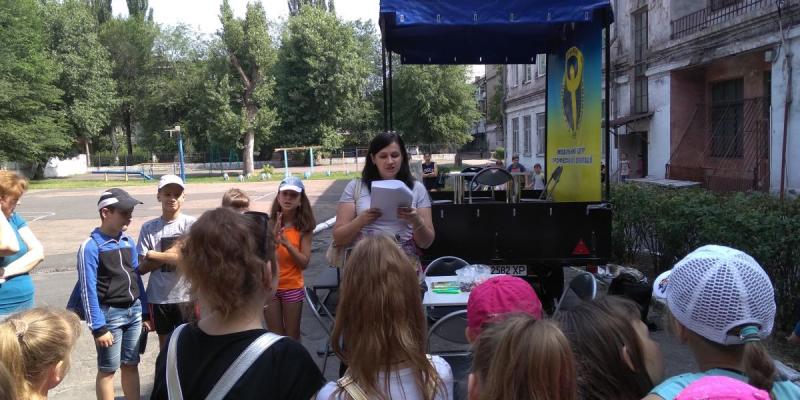 Кам’янський міський центр зайнятості подарував яскраве свято вихованцям літнього пришкільного табору СЗШ №5. Під час інтерактивного заходу на базі мобільного центру професійної орієнтації наймолодші учасники долучилися до конкурс малюнку «Розмалюйка», де зобразили професію своєї мрії, а учні середнього шкільного віку демонстрували винахідливість та розмірковували, які саме здібності потрібні для тієї чи іншої професії під час гри «Відгадай професію»