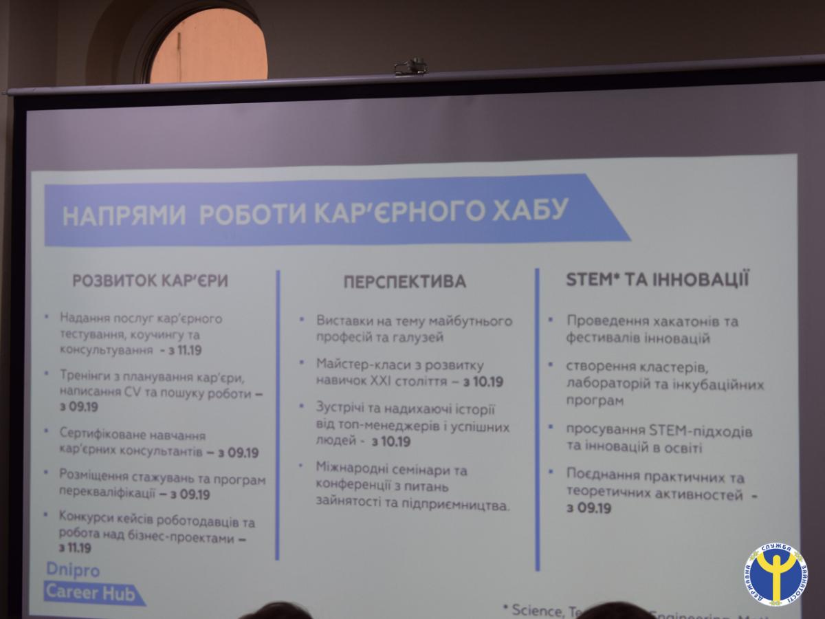 Дніпропетровська обласна служба зайнятості виступила партнером заходу та на замовлення організаторів виставки 27 вересня 2019 року провела ярмарок вакансій, в якому взяли участь майже 150 безробітних осіб.