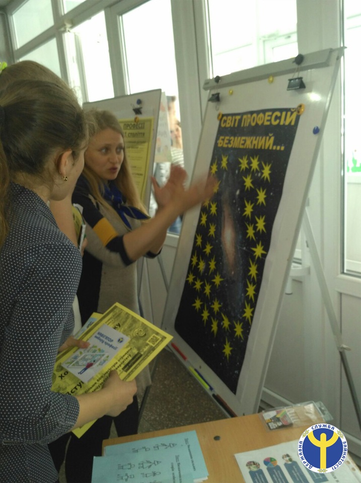 Для більш детального ознайомлення із послугами служби зайнятості школярі отримали інформаційні буклети: «Знайти своє покликання – джерело щастя», «Твій професійний путівник», «10 ТОП актуальних професій міста», «Навігатор вибору професії».
