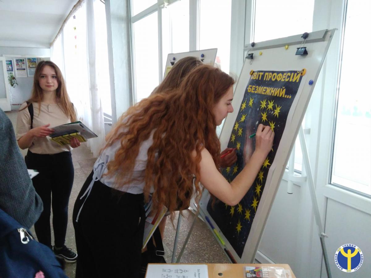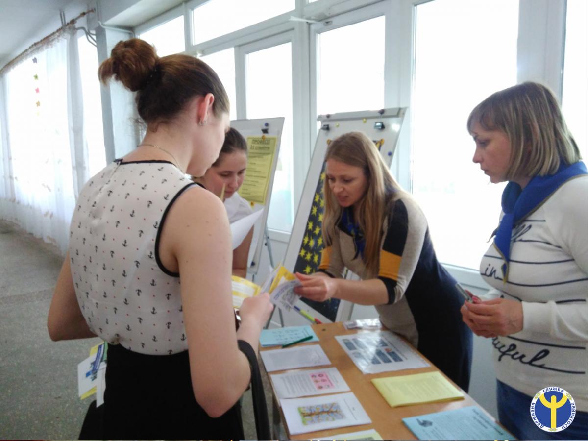 У фойє школи були розміщені відповідні тематичні стенди та презентації до яких з цікавістю підходили школярі. Представники ВНЗ розповідали про особливості та переваги свого закладу, умови вступу та запрошували випускників на навчання.