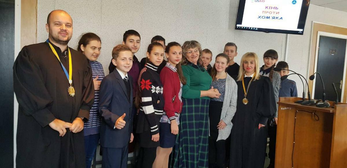 Працівники суду запропонували дітям переглянути повчальний мультик «Кінь проти хом’яка». Кожен бажаючий із присутніх школярів, відчувши себе суддею, висловив свою точку зору стосовно того, кому ж присудити підкову. Коли були озвучені аргументи, дехто вирішив змінити своє попереднє рішення.
