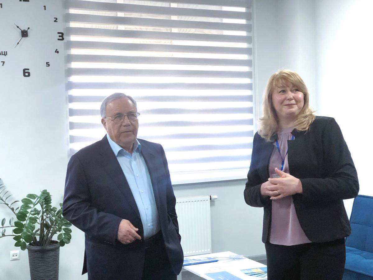 Директорка філії Лариса Шевченко презентувала роботу центру та розповіла про його діяльність у складних реаліях сьогодення. Окрему увагу приділили роботі офісу «Зроблено в України», де надаються консультаційні послуги для започаткування та розвитку бізнесу.