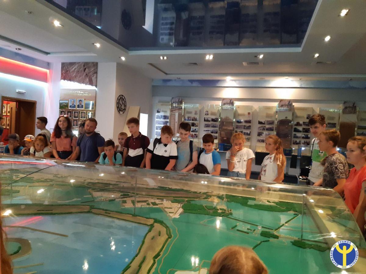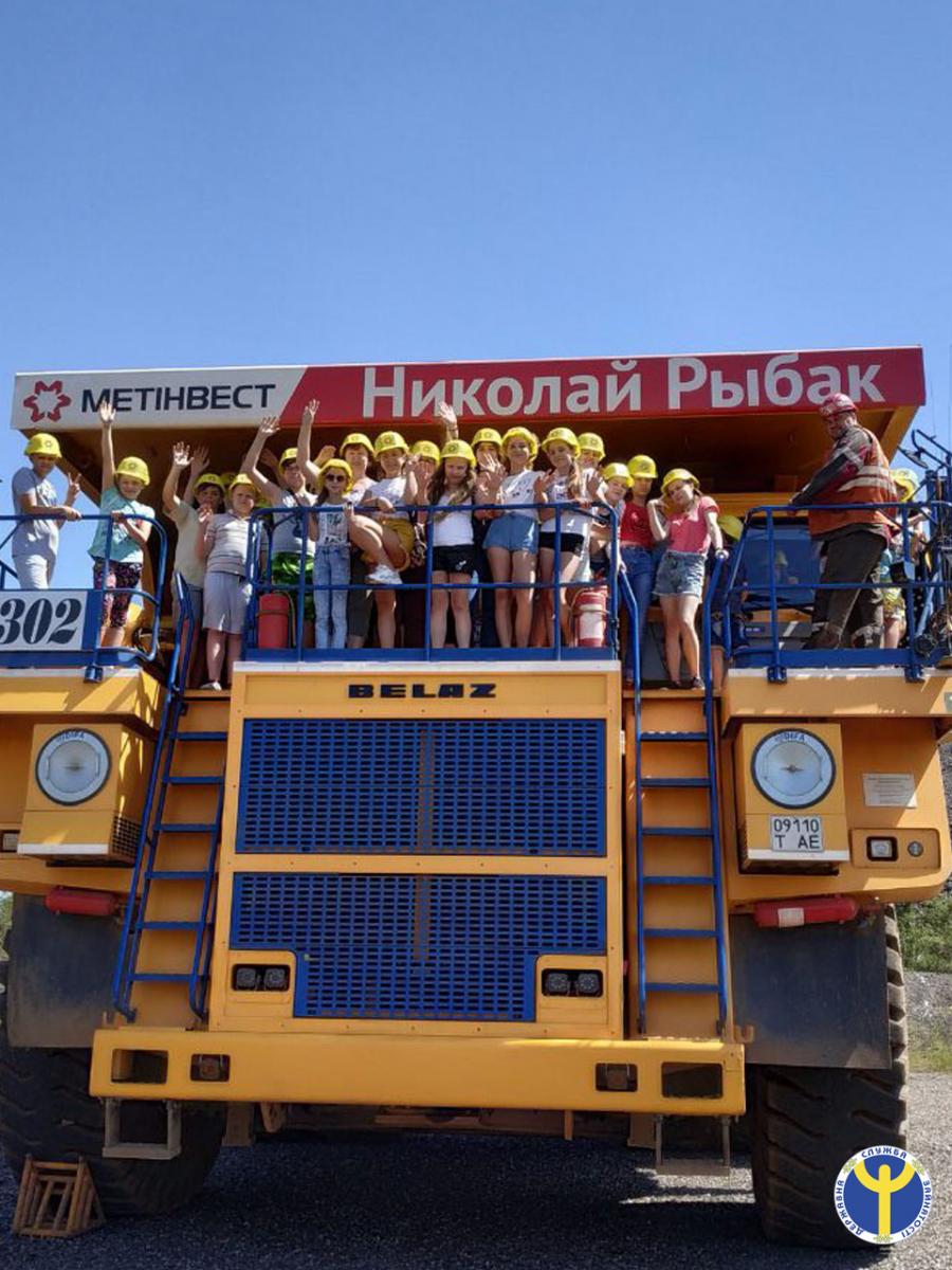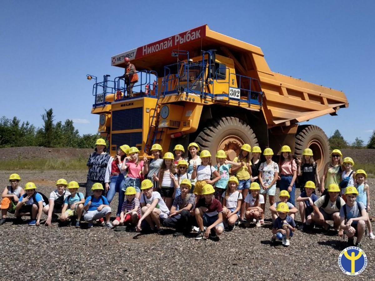 Перед екскурсією до виробничих потужностей комбінату діти пройшли інструктаж та переглянули відеоролик щодо дотримання правил техніки безпеки на підприємстві; вбралися у спецодяг і вирушили до найбільшого кар’єру на комбінаті – Глеюватського. На оглядовому майданчику кар’єру відкрилася вся його велич та краса.