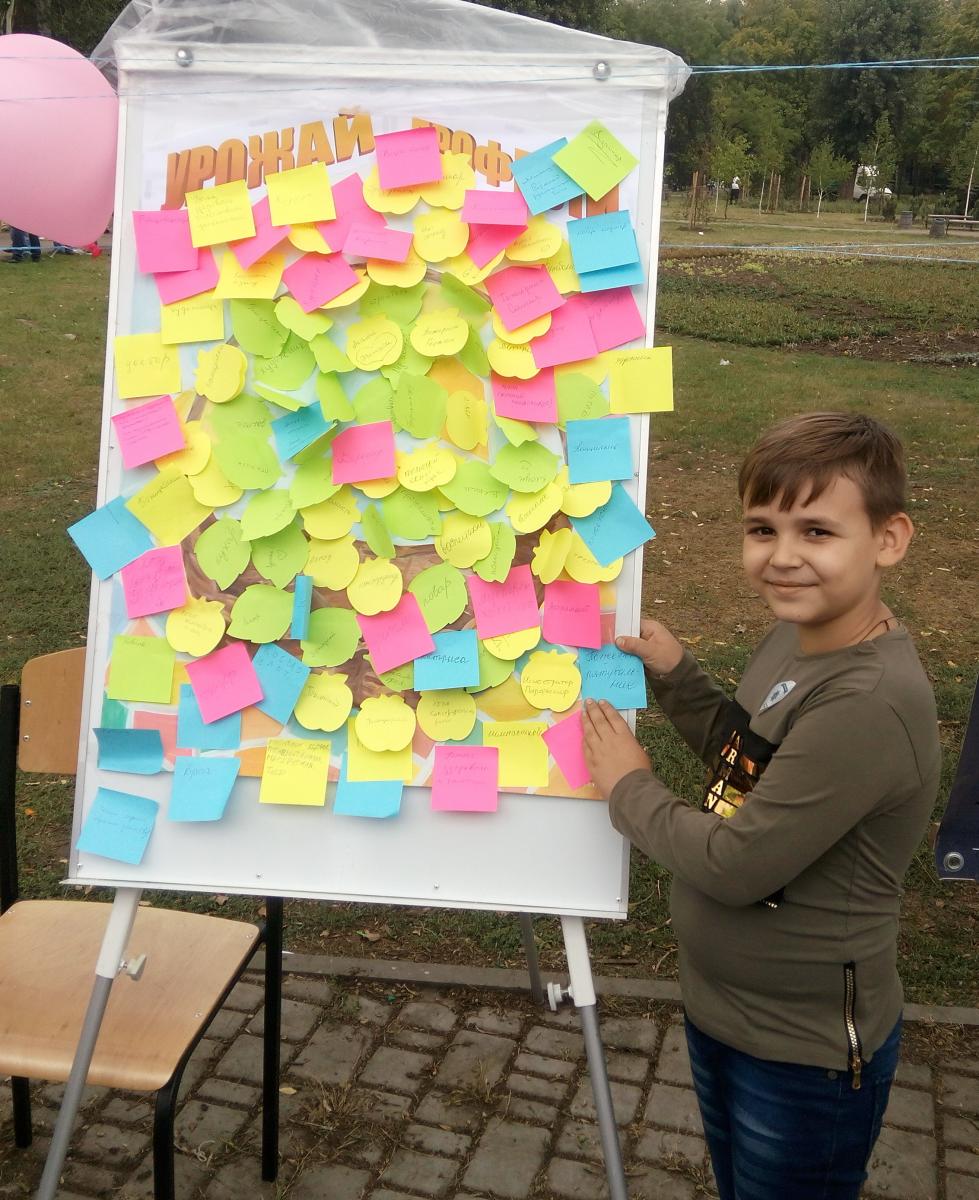 На локації «Урожай професій» школярі складали у кошик фрукти та овочі з назвами професій, які хочуть обрати в майбутньому.