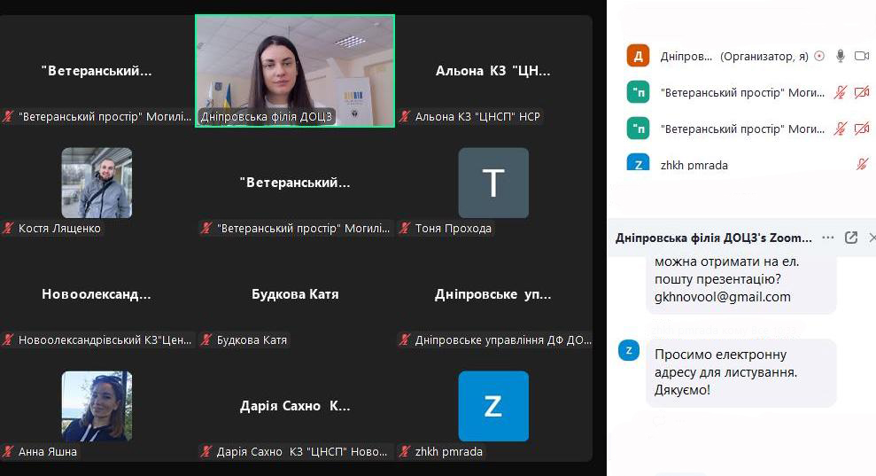 Для представників ветеранських просторів (хабів), фахівців ЦНАП Дніпровської, Слобожанської, Солонянської, Царичанської та Петриківської територіальних громад було проведено вебінар «Отримай грант від держави – розпочни свій бізнес».