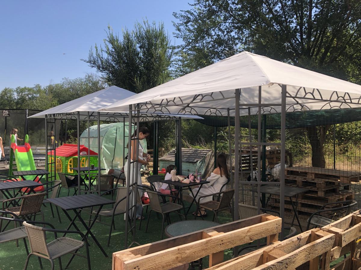 Отримавши фінансування у розмірі 250 тисяч гривень, пані Оксана реалізувала ідею, що поєднує якісну кухню та унікальний простір для сімейного відпочинку. Фішка закладу – ігрова зона для дітей та загороджений майданчик із камерунськими козами. Ці маленькі й неймовірно милі тварини миттєво завойовують серця відвідувачів і дарують щирі емоції як малечі, так і дорослим.