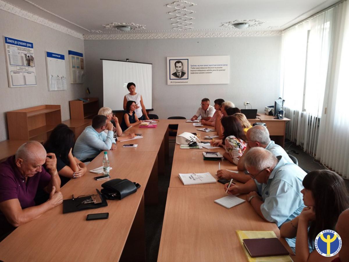 Також Оксана Харченко проінформувала присутніх щодо актуальних аспектів організації професійного навчання громадян за направленням державної служби зайнятості та акцентувала увагу присутніх на важливості підвищення конкурентоспроможності на ринку праці окремих категорій громадян за рахунок ваучера.