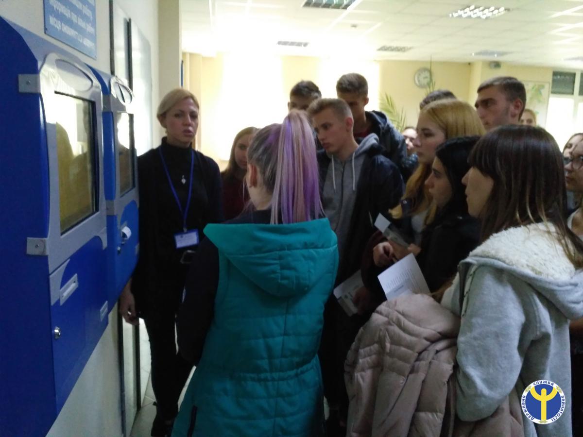 Далі фахівець центру зайнятості Ірина Деменчук ознайомила майбутніх випускників з інформаційним сектором: описами професій, барометром актуальних професій на ринку праці міста та паспортами ринкоутворюючих підприємств. За допомогою терміналу самостійного пошуку роботи школярі мали можливість самостійно підібрати собі вакансію.