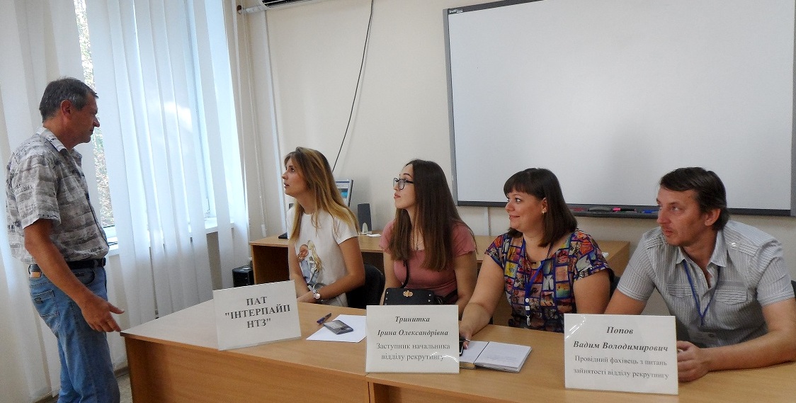 У заході взяли участь спеціаліст управління ПАТ «Інтерпайп НТЗ» Світлана Комарова, заступник начальника відділу рекрутингу Дніпровського міського центру зайнятості Ірина Тринитка та 19 незайнятих осіб.