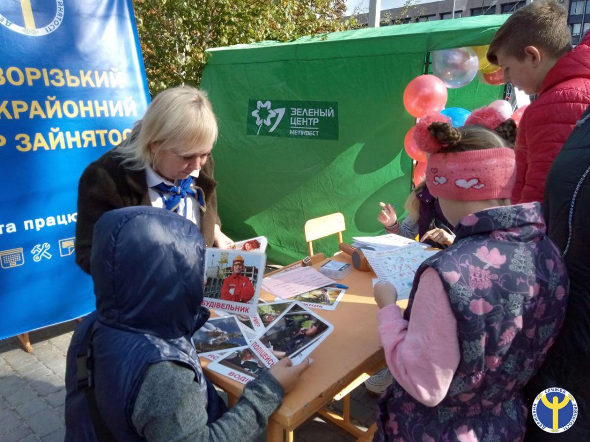 Потужно була представлена на заході локація служби зайнятості, де юні учасники брали участь у майстер-класах та тематичних інтерактивах. Найменші учасники брали участь конкурсах: професії-розмальовки, професійні пазли, загадки, ребуси, лото. Підлітки та майбутні випускники шкіл із задоволенням користувалися вільним мікрофоном для висловлювання власних професійних планів та проходили профдіагностування.