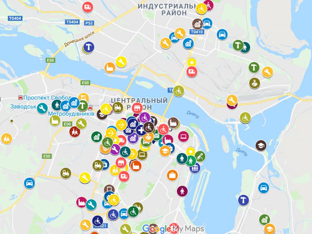 - інтерактивна карта вакансій Дніпропетровської служби зайнятості з використанням «Google maps»