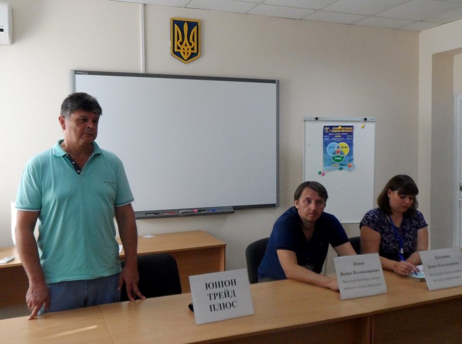У заході взяли участь завідувач виробництва ПП «ЮНІОН ТРЕЙД ПЛЮС» Леонід Петльов та 30 безробітних осіб.