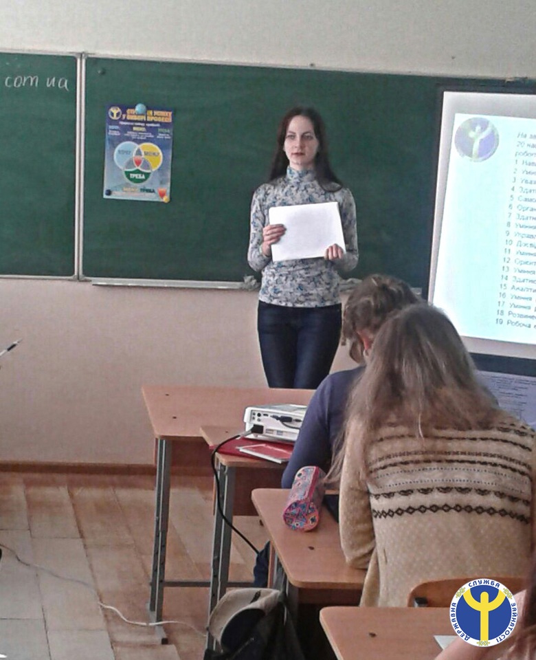Під час заходу школярі проявили свою активність, вільно дискутували, охоче брали участь у запропонованих інтерактивних заняттях, із зацікавленістю пройшли тест щодо визначення кола власних професійних інтересів та здібностей.