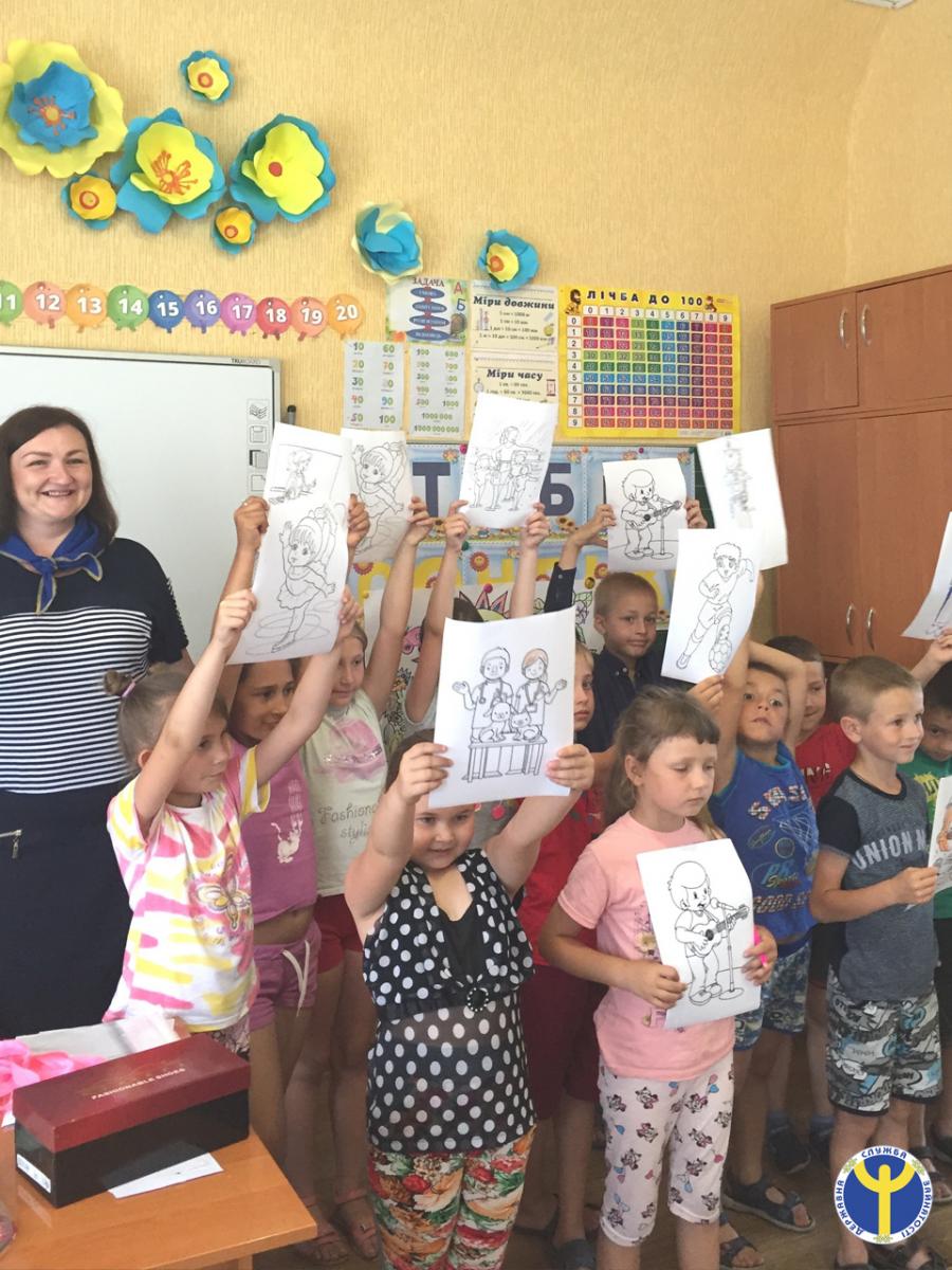 Для найменших відвідувачів табору фахівці служби зайнятості провели профорієнтаційну гру «Відгадай-ка», під час якої малеча відповідала на запитання професійної тематики, розв’язувала ребуси та вирішувала кросворди. Далі діти презентували професії, за якими працюють їхні батьки, і ділилися роздумами щодо власного професійного майбутнього.