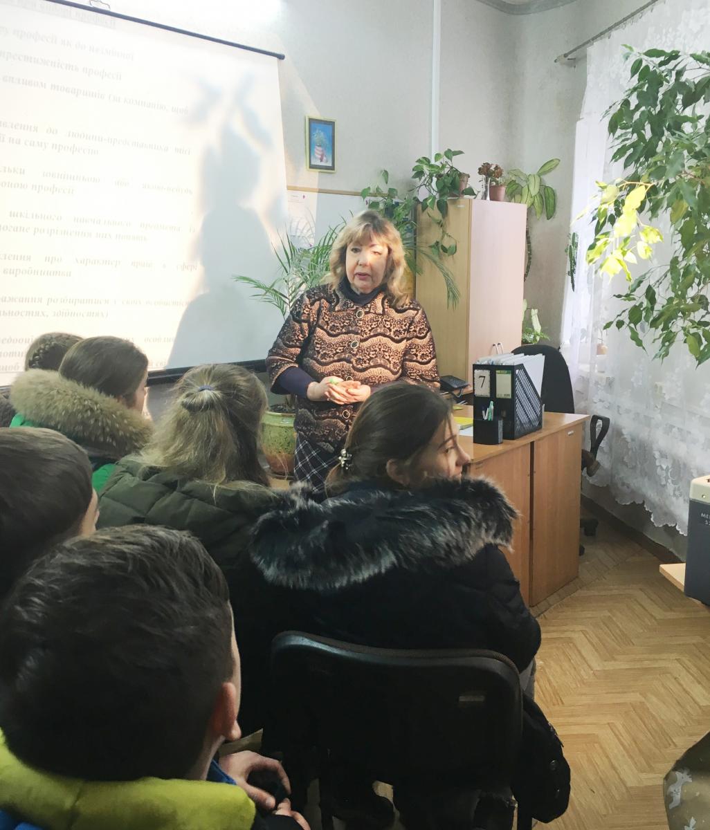 Фахівці служби зайнятості презентували послуги Філії та поспілкувалися з учнями про їх професійне майбутнє. Щоб допомогти дітям оцінити свої знання про світ професій та підвищити власну поінформованість щодо професійного самовизначення, відбулася презентація он-лайн Платформи «Моя професія: консультаційна мережа». Учні дізналися, що послуги з профорієнтації можливо отримати дистанційно, в он-лайн форматі. Декілька школярів відразу зареєструвалися на Платформі з метою проходження подальшого тестування.