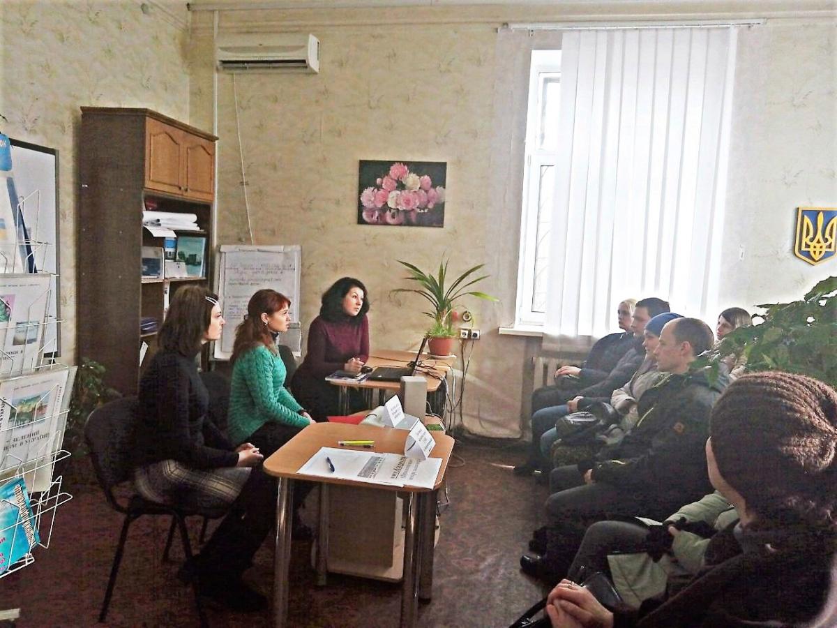 Заступник начальника відділу рекрутингу Кам’янського міського центру зайнятості Ірина Дев’ятка ознайомила присутніх зі станом ринку праці міста та послугами служби зайнятості. «Головна задача служби зайнятості – спростити та пришвидшити пошук роботи та зробити цей процес максимально продуктивним та ефективним для безробітних осіб», - зауважила вона.