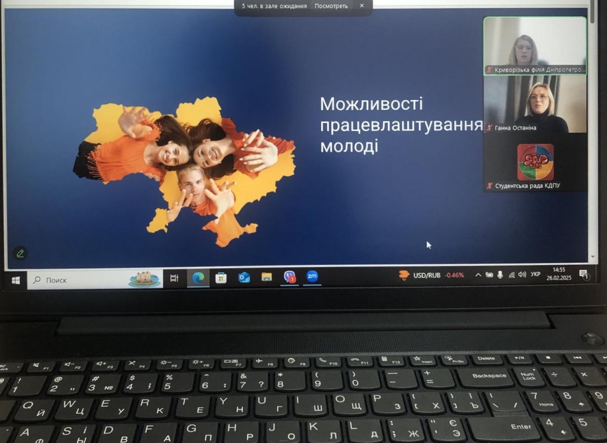Заступниця директора Криворізької філії Дніпропетровського обласного центру зайнятості Олена Боголепова провела онлайн-зустріч із майбутніми випускниками Криворізького державного педагогічного університету.