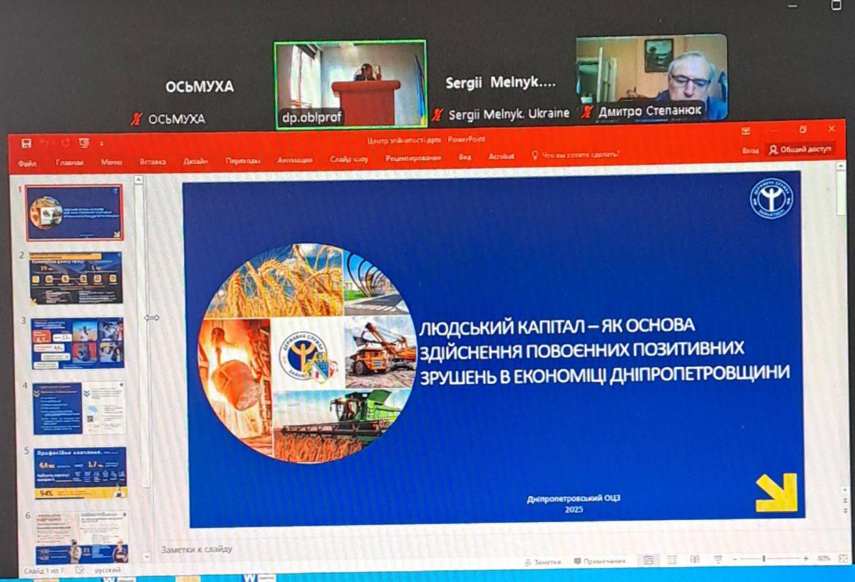 Доповідь Наталії Селякової була присвячена темі людського капіталу, як основи здійснення повоєнних позитивних зрушень в економіці Дніпропетровщини.